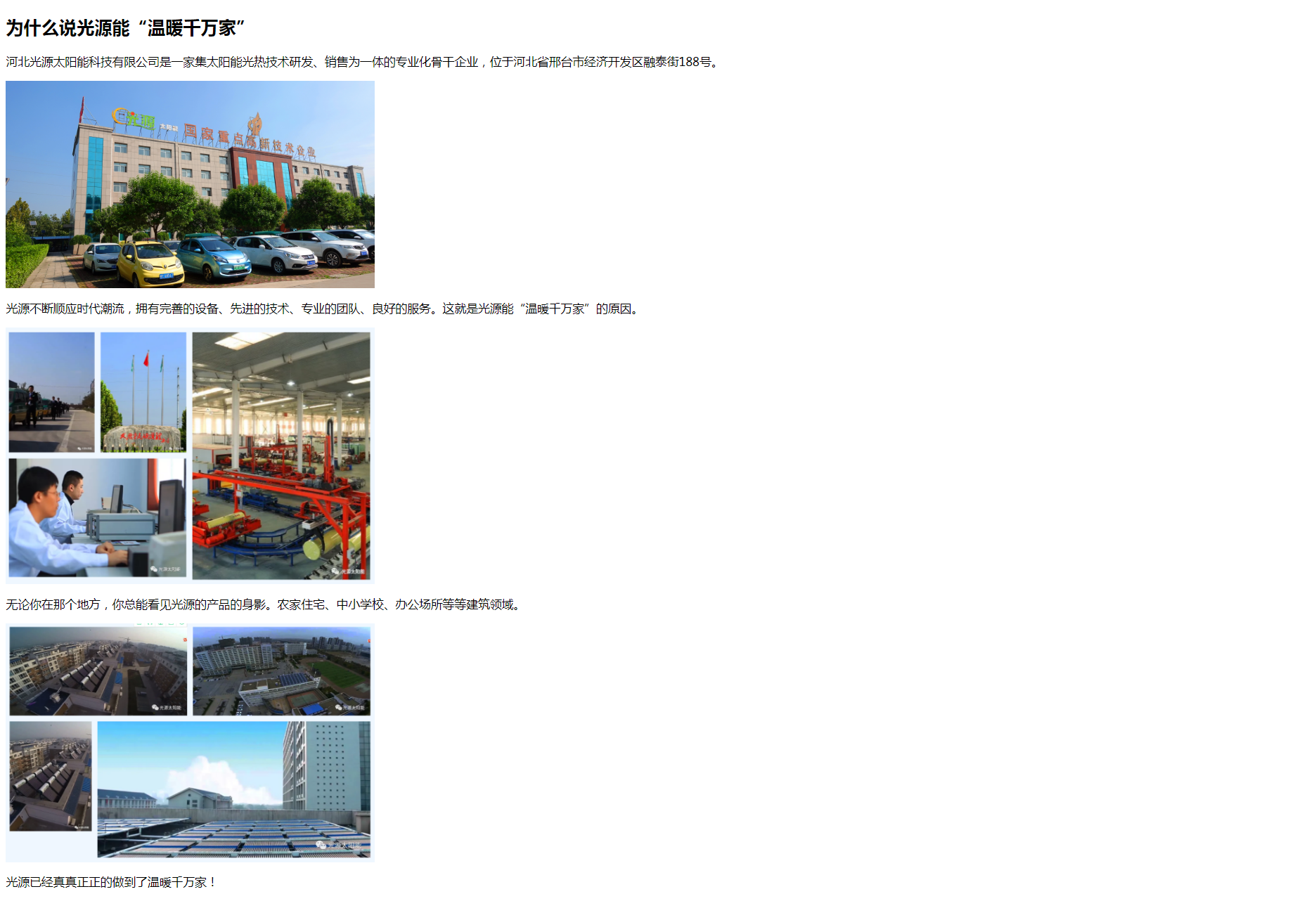 Copyright(C)2021 河北光源太陽能 E-mail: hbguangyuan@163.com 地址: 邢臺經濟開發區王快鎮北屋村永安路2199號 關于光源 | 公司動態 | 聯系我們 | 法律聲明